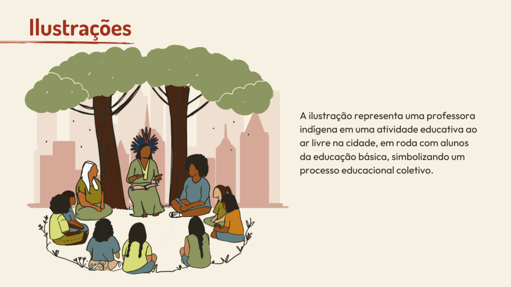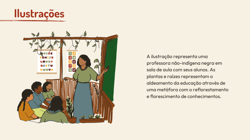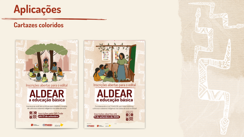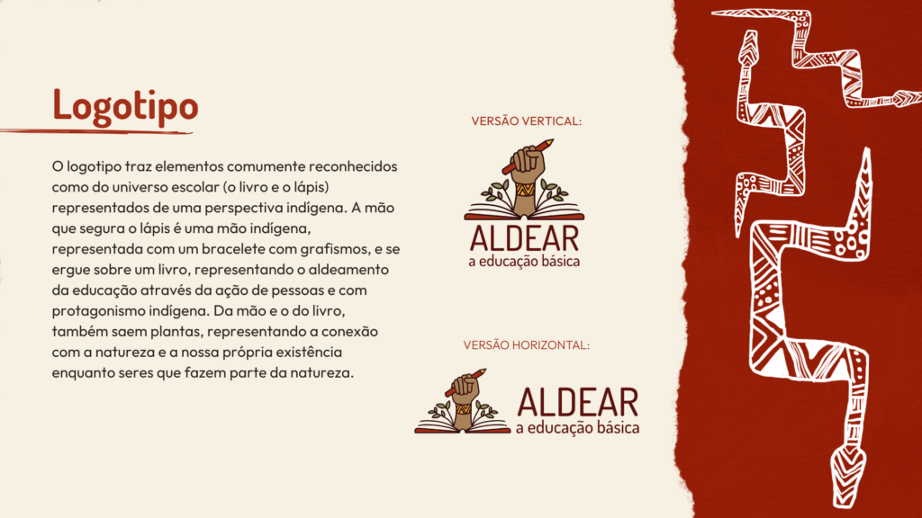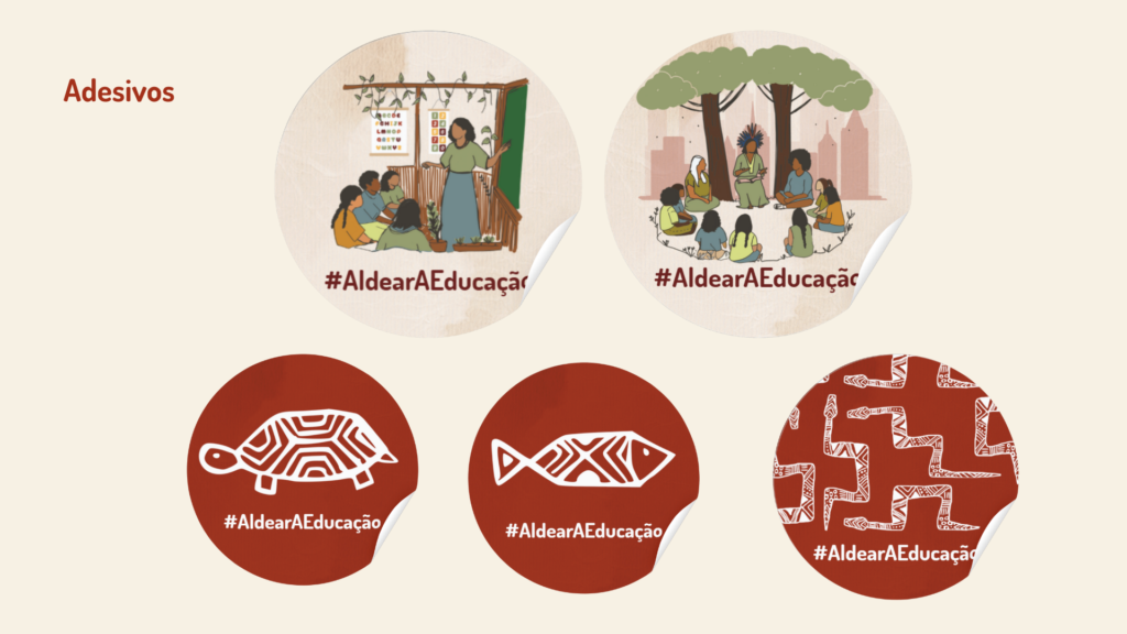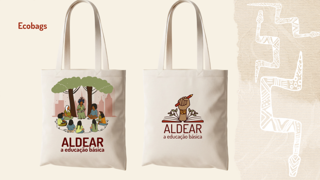 Para essa identidade visual, buscamos representar o contexto de sala de aula de uma perspectiva indígena, conectada com a natureza e saberes tradicionais. Como aplicações, fizemos cartazes, ecobags, adesivos e um versão animada do logotipo.