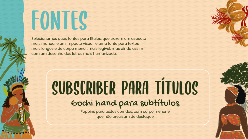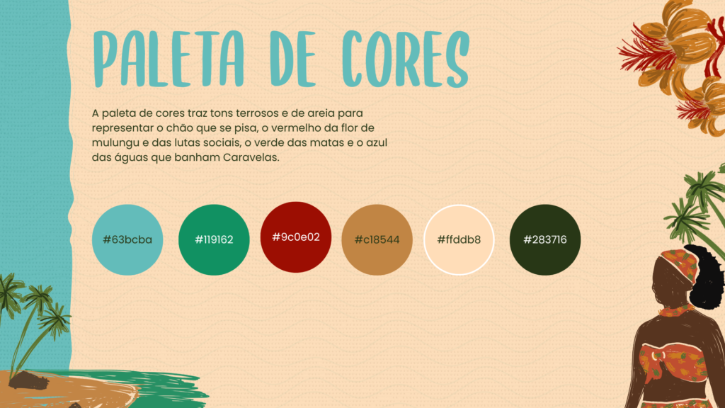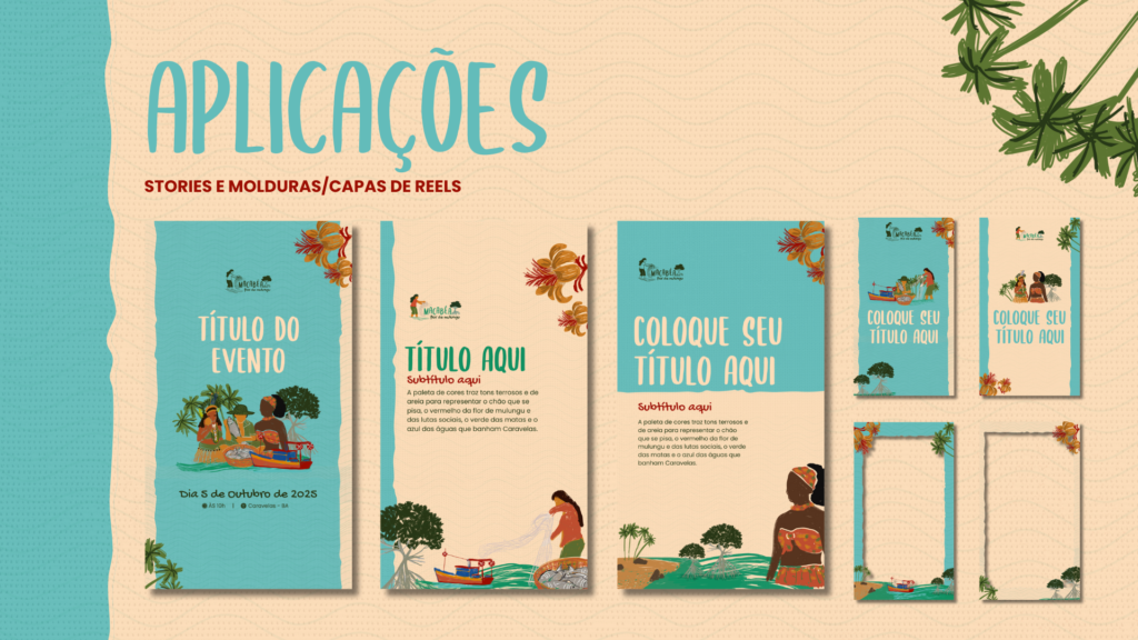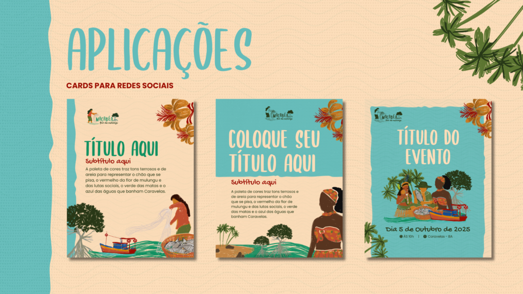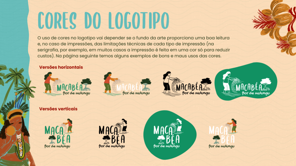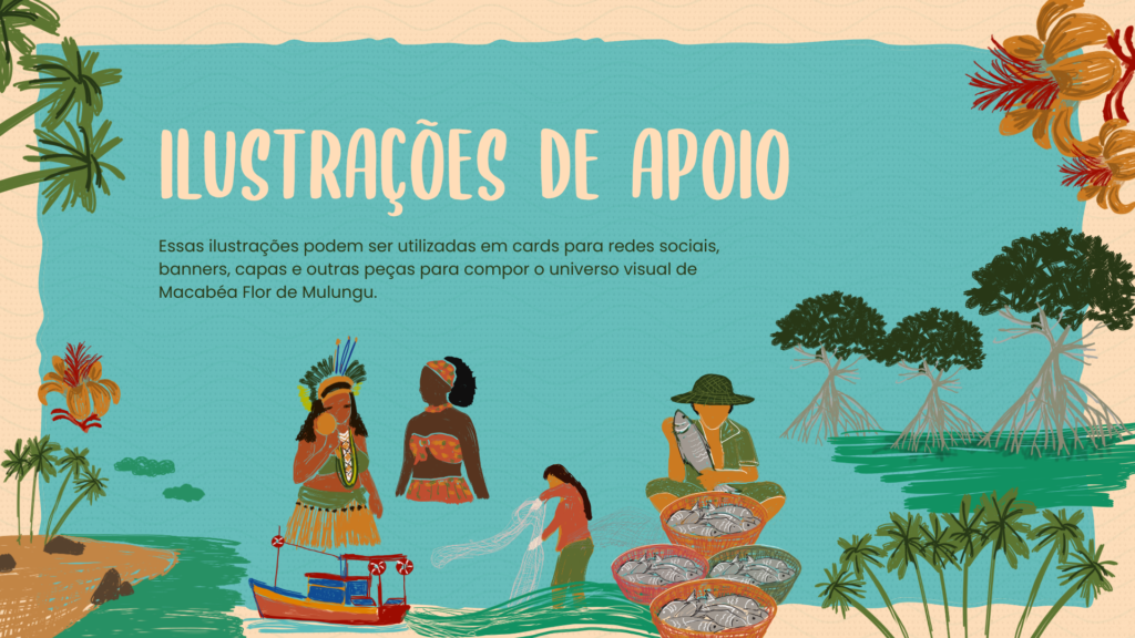 Nesta identidade visual, buscamos traduzir a riqueza e a complexidade desse contexto: um território de lutas, memórias e saberes entrelaçados. Pensamos elementos gráficos como formas orgânicas, figuras humanas diversas, vegetação do território e elementos que remetam à pesca. Tomamos cuidado também para que todas as escolhas visuais remetessem a um fazer artesanal.