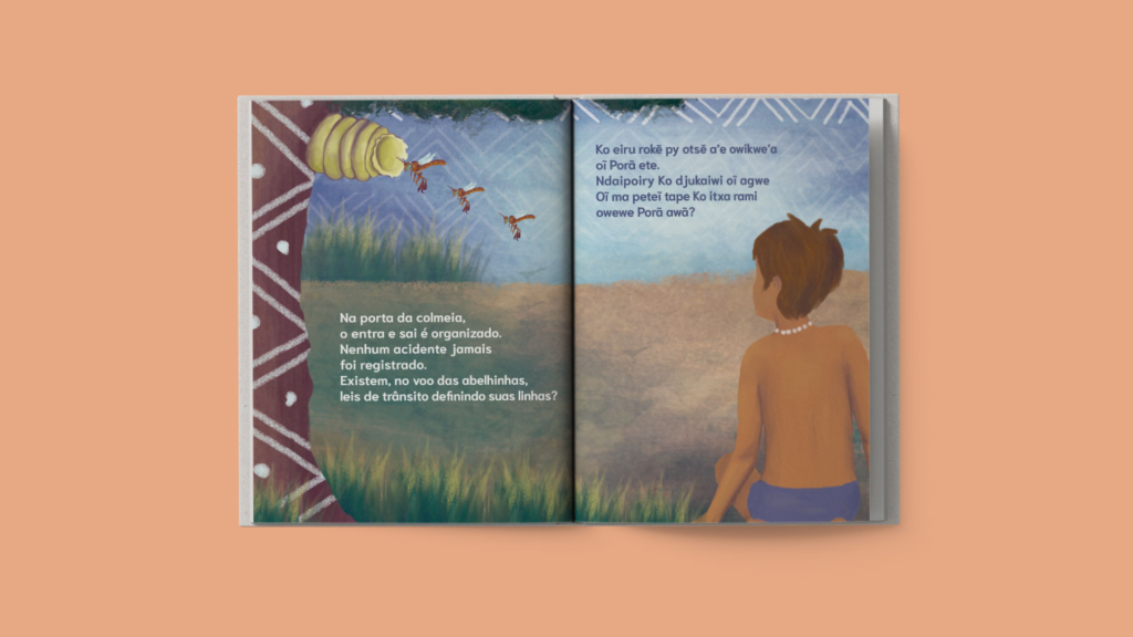 Escrito por Daniel Montoya, Pergunte à floresta – Eporandu ka’agwy upe ganhou tradução para o tupi-guarani de Luã Apyká. O tupi-guarani é parte do chamado Tronco Tupi, composto por uma dezena de variações linguísticas das populações indígenas sul-americanas. Nhandewa, braço do tupi-guarani adotado no livro, é falado no litoral de São Paulo e norte do Paraná.